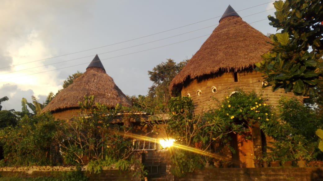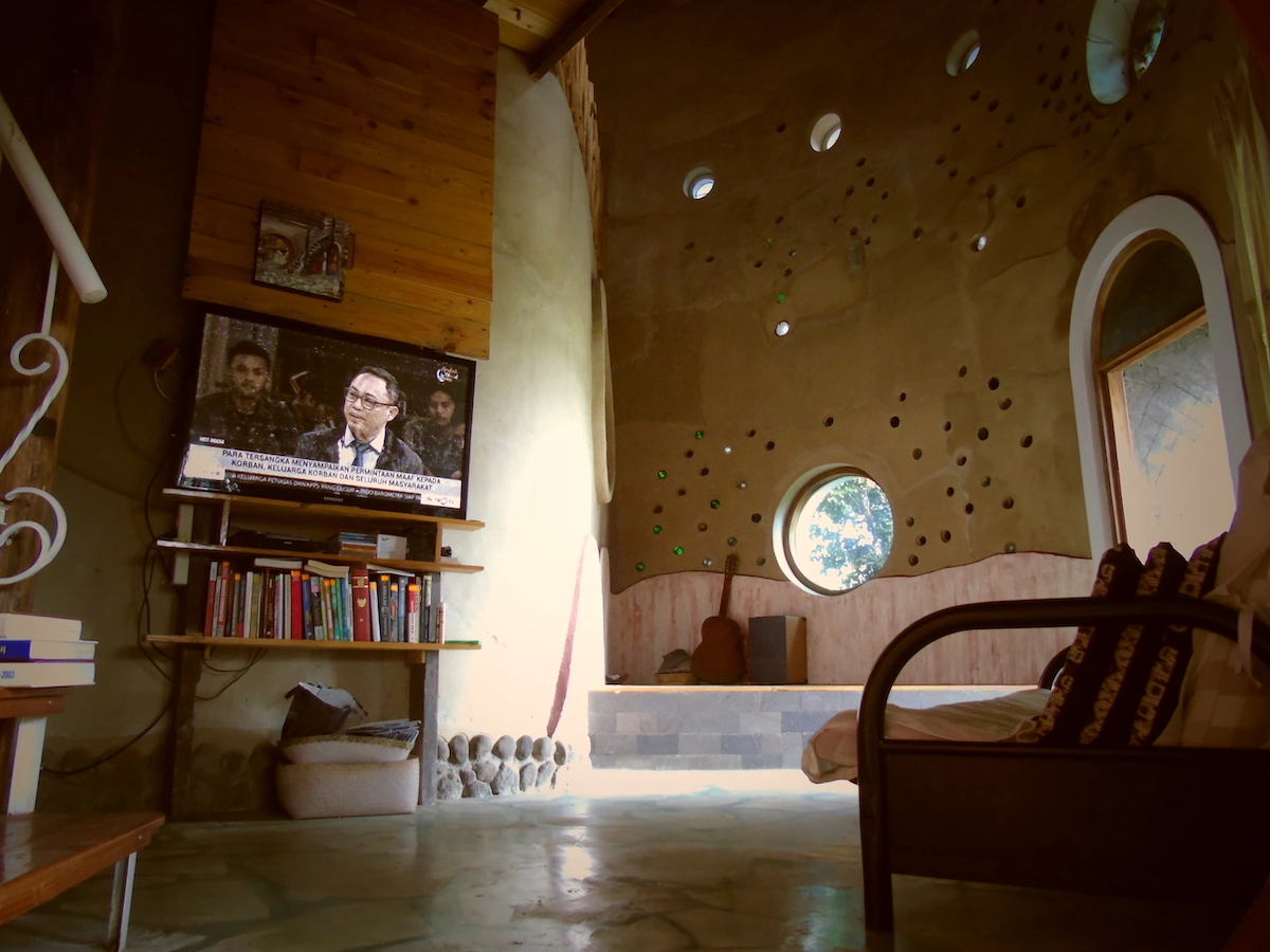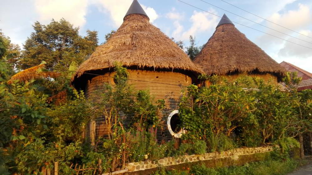 Discover a tranquil retreat behind Prambanan temple, where a unique clay-made house awaits. Enjoy the cool ambiance of this serene property.