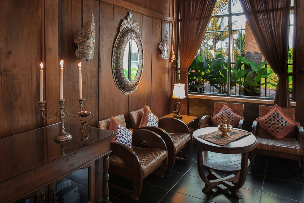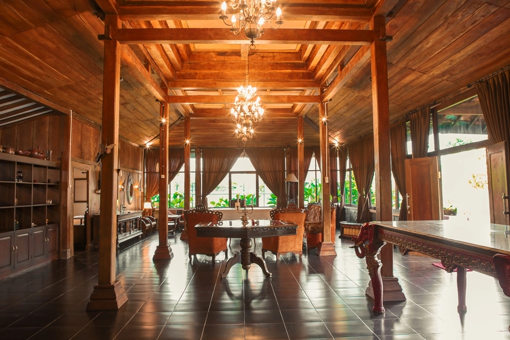 Luxury and tradition in a home with a view of Mount Merapi in Palagan, Yogyakarta. Combining opulence with a cozy atmosphere.